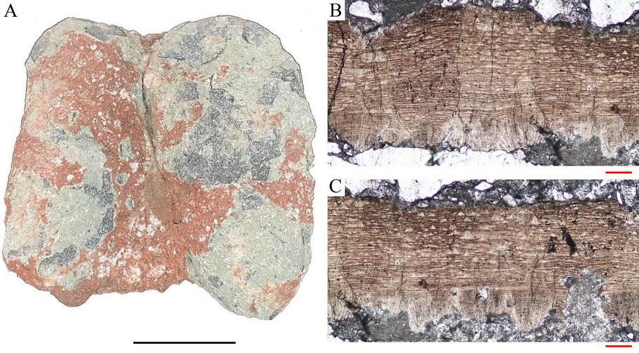 王强称,他在后期对这2枚恐龙蛋进行了仔细观察研究,发现该标本表面的纹饰与长形蛋类的纹饰、厚度均有明显的差异,不具备长形蛋类表面脊状或瘤点状纹饰的典型特征,而是呈现出低矮的网状纹饰,更接近于网纹副长形蛋的纹饰特点。为了进一步确认该标本的准确属种,王强随后对其进行取样,并由技术人员带回北京进行显微结构切片,发现它的显微结构与2010年上半年在浙江省台州市天台县首次发现的网纹副长形蛋基本一致,王强由此确认该标本属于网纹副长形蛋。王强说,这是河源今年新发现的一种恐龙蛋化石属种,广东河源也由此成为我国继浙江天台之后第二处发现网纹副长形蛋的地方。