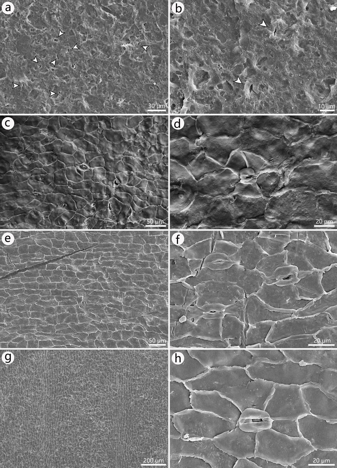 图3. 中华叉羽叶表皮细胞及气孔器结构特征
