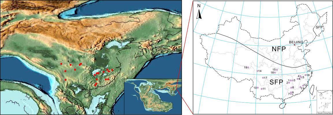 图4. 晚三叠世中华叉羽叶在中国的分布特征