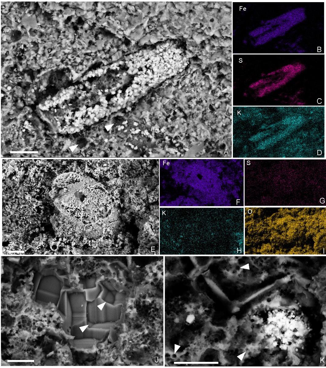 海绵动物软体组织以及骨针表面的“蜂窝状结构”(草莓状黄铁矿印痕)