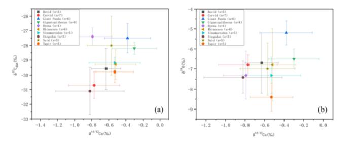 图2 广西柳城巨猿动物群钙稳定性同位素分析