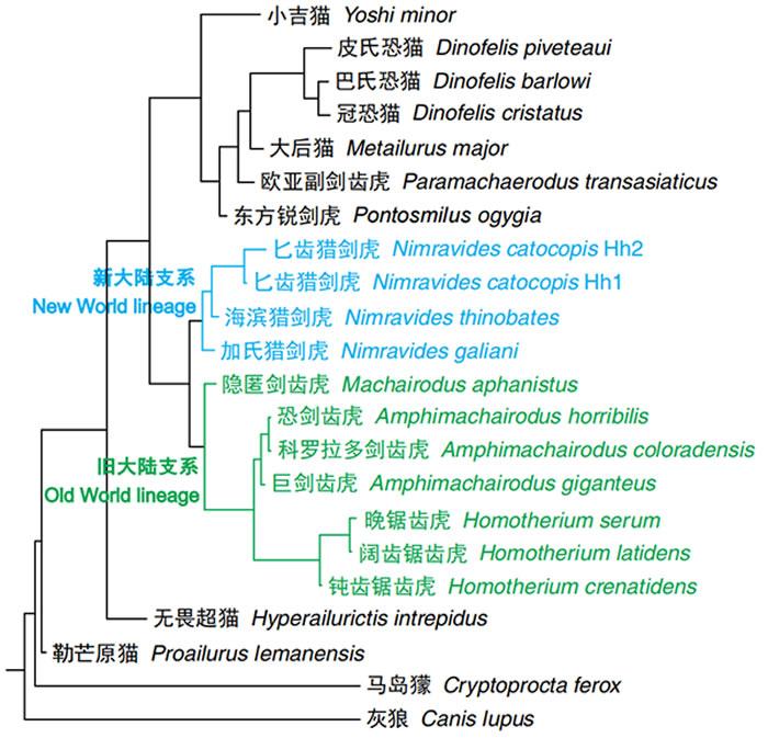 Machairodus-Amphimachairodus的一个支系。本文第一作者江左其杲最近另外一篇论文也支持这一点,即北美的匕齿猎剑虎