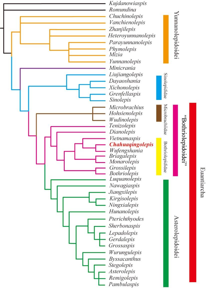 沟鳞鱼科是在泥盆纪末期就已绝灭的盾皮鱼纲胴甲鱼目中的一个单系类群,其模式属沟鳞鱼属(Bothriolepis Eichwald,1840)的研究历史悠久,是胴甲鱼类中分布最广泛、多样性最高的一个属,全球发现的该属中种的数量迄今已超过60个。除模式属以外,以往得到学界认可的、归入沟鳞鱼科的属仅包括5个——发现于中国云南武定的Wufengshania、越南北部的Vietnamaspis、澳大利亚东南部的Monarolepis与Briagalepis,以及产于欧洲波罗的海与比利时的Grossilepis,而在哈萨克斯坦及中国云南武定地区分别发现的Tenizolepis与Dianolepis则被看作沟鳞鱼类中的基干类群。在中国云南武定及曲靖地区距今约4亿年前的下泥盆统中发现的沟鳞鱼未定种(Bothriolepis sp.)及五凤山鱼(Wufengshania)代表了沟鳞鱼类最早的化石记录,指示华南是沟鳞鱼类的起源和演化中心。华南是全球深入开展沟鳞鱼类研究最重要的地区。