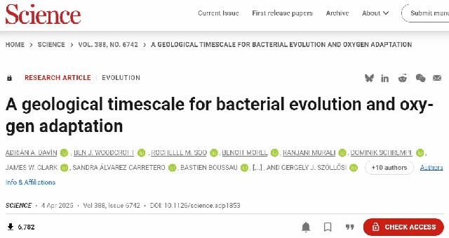 原文来源:Adrián A D, Ben J W, Rochelle M S, et al., A geological timescale for bacterial evolution and oxygen adaptation.Science388,eadp1853(2025).