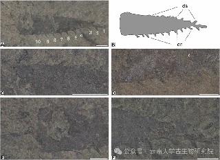 图1. 新马龙生物群中Caryosyntrips cf. C. serratus附肢化石的细节特征