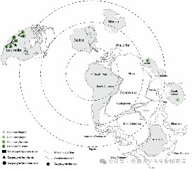 图3. 寒武纪时期古大陆格局以及Caryosyntrips的地理分布