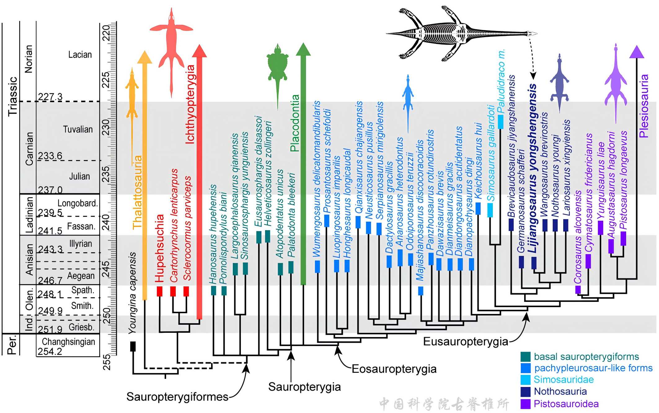 基于欧洲的幻龙类属种,传统观点认为幻龙类是一类形态单调、演化局限的早期鳍龙类。永胜丽江龙,连同近年来在云南发现的其他中三叠世幻龙类,如祭羊山短尾龙(Brevicaudosaurus jiyangshanensis)、罗平幻龙(Nothosaurus luopingensis)等,极大丰富了我们对幻龙类形态和生态分异度的认知,以及对三叠纪鳍龙类脊椎演化可塑性的了解。