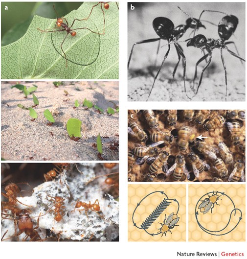 (社会性昆虫的劳动分工 | 来源:Nature Reviews Genetics)
