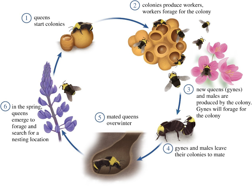 (熊蜂蜂群的典型生命周期 | 来源:Biology Letter)