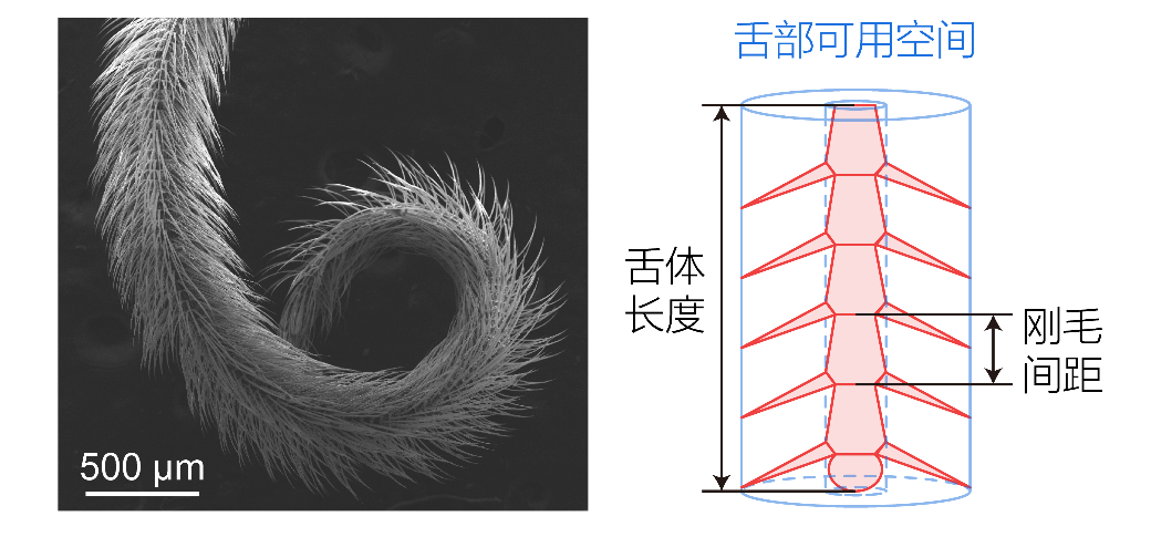 (中唇舌的扫描电镜图像和示意图 | 来源:黄泽翔)