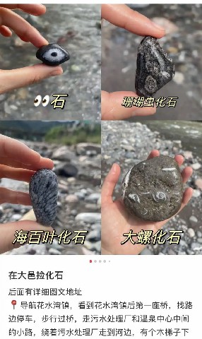 近日,有网友在社交平台分享了自己位于成都西岭雪山脚下的大邑花水湾、西岭镇附近的河道捡“化石”的照片,立刻引起网友关注,纷纷前去打卡。不少网友们还晒出了自己的“战利品”,掀起了一股“疯狂的化石”热潮。