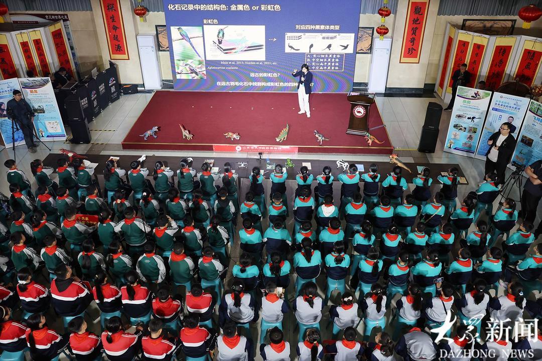 鸟类的祖先是恐龙?如何从化石中读取古生物“密码”?鸟类羽毛为何有那么多种颜色……3月29日,位于临沂市平邑县的山东天宇自然博物馆(简称天宇博物馆),鸟类起源与生命演化学术研讨会暨科普报告会现场,周忠和等专家结合大屏幕上的图片、数据娓娓道来,来自平邑县5所小学的200名小学生,还有教师、家长代表,以及慕名而来的参观游客,跟着专家的讲述,共同探寻跨越亿万年的生命之问。
