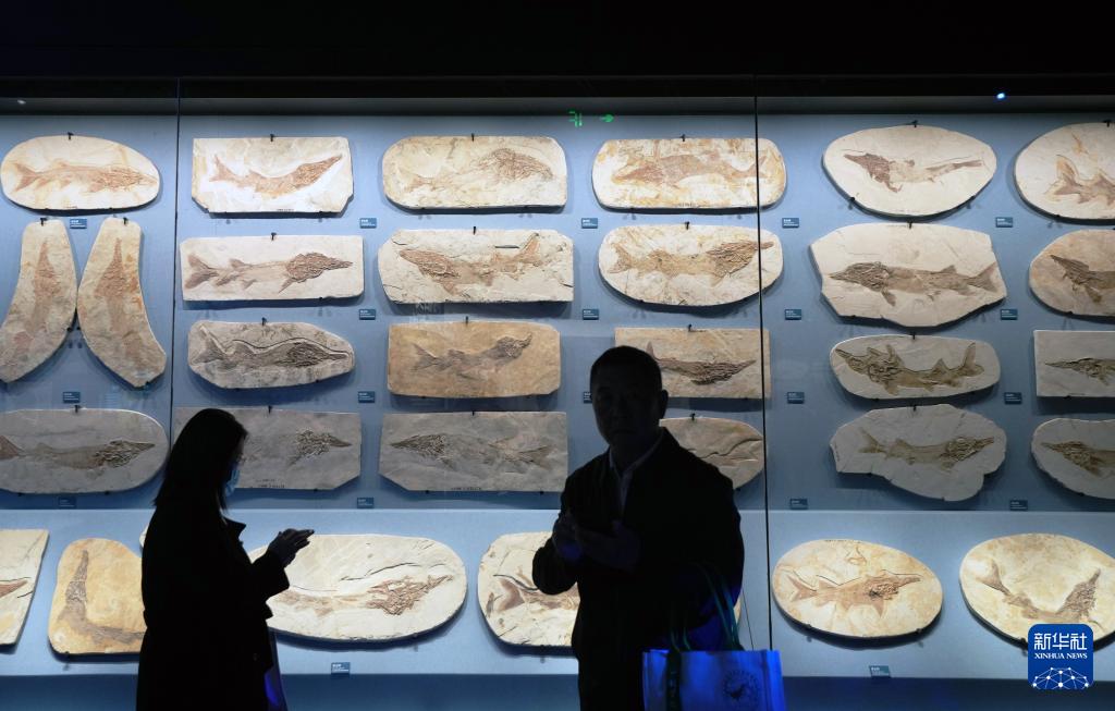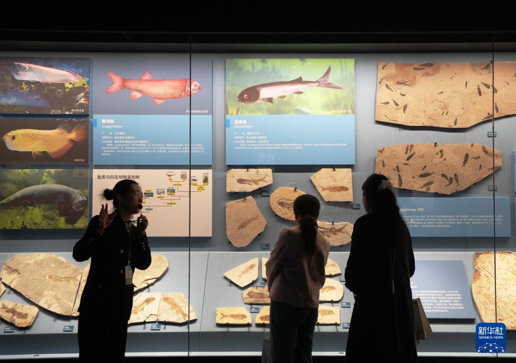4月27日,游客在辽宁朝阳古生物化石博物馆内参观。新华社记者 李钢 摄