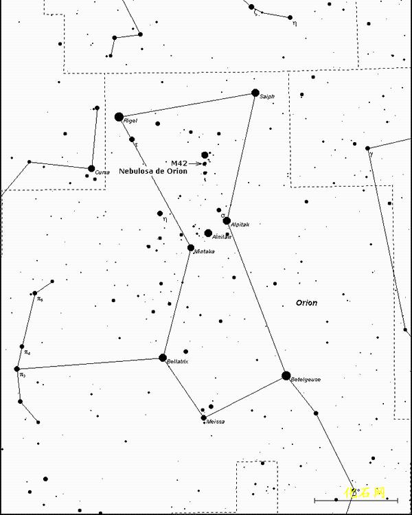 在冬季的夜空中,猎户星座非常引人注目,就象站立在星空中的一位武士,就在这位武士的腰带下方,肉眼可见一个云雾状天体,这就是著名的猎户座大星云。