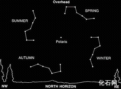 北斗星一年四季在天空中的运动(中间为北极星)