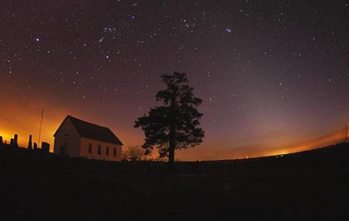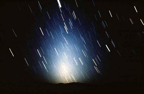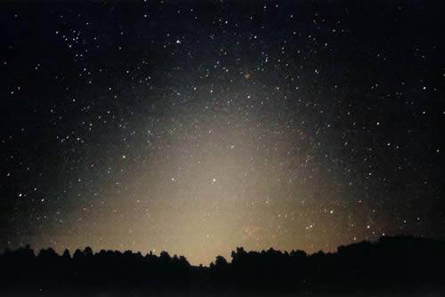 位于地球上低纬度和中纬度地带的人于春季黄昏后在西方地平线上或于秋季黎明前在东方地平线上所见到的淡弱的三角形光锥就称黄道光。