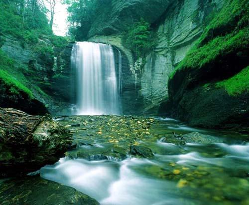 瀑布上游,河水时急时缓,时分时合,迂回曲折,于参天古木间,花草掩映,百鸟低徊,江水忽遇断崖,飞泻而下。恰似一巨大银练,高悬挂于峡谷之上。站在瀑布之下,水气蒸腾,上接云汉,其滚滚洪流,折而复聚,飞泻而下,连冲三关。