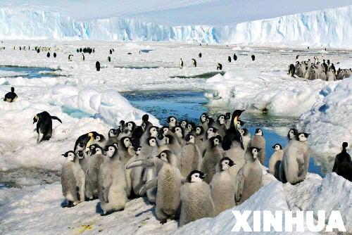 这是南极大陆上成群的帝企鹅(2005年12月21日摄)。 新华社记者张宗堂摄