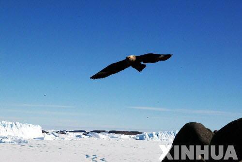 这是一只贼鸥在南极翱翔(2005年12月31日摄)。 新华社记者张宗堂摄