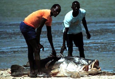 湖心有南、北、中并列的3个小岛,岛上长满了翠绿的草丛。图尔卡纳湖水碧绿,水性清凉,非常有趣的是,除南部湖水中含盐度高可以提取各种盐类外,其他浅水区的湖水只是略带碱味,仍然可以入口饮用。尤其是湖区内的水产异常丰富,鱼的种类众多,鱼儿的个头也比较大,有的鱼长约数米,重达百十来斤。特别是湖中盛产鲤鱼,鲤鱼的数量众多,个头也比较大,有的长达10多米,发怒时能够顶翻湖水中的木船。