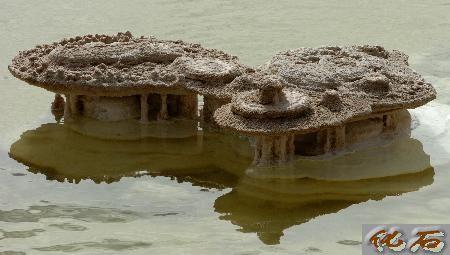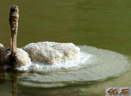 察尔汗盐湖中形似白天鹅的盐花