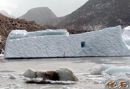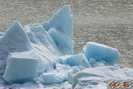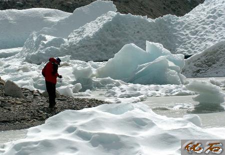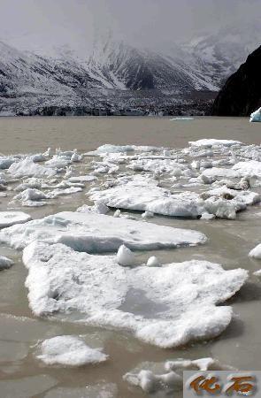 西藏自治区八宿县岗日嘎布湖面上漂浮着从雅隆冰川断裂的巨大冰块