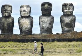 复活节岛北部的阿纳凯是全岛最富魅力的景点,除一排威武的“莫埃”石像外,一片金黄色的沙滩又长又宽;岸上的棕榈树林青翠茂密。攀上全岛最高点,海拔507米的特雷瓦卡山顶,极目远眺,岛上的大小火山和四周的石像尽收眼底,浩瀚的太平洋与蓝天浑然一体,令人心旷神怡。从山上下来不远便是著名的“七尊莫埃”景点。据传,它是一个毛利巫师的7个儿子等待欧图·玛图阿王到来的地方。“达海”是全岛保存最完好的“莫埃”石像群。每当傍晚,人们步行到这里观看日落,霞光映红半边天,巨大的石像被衬托出永恒的剪影。