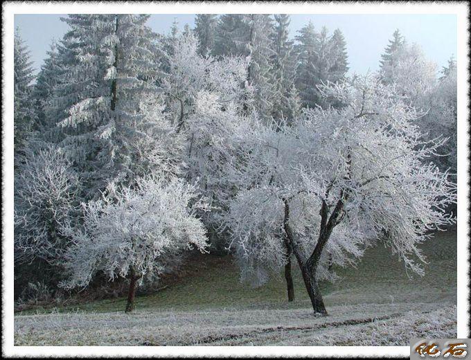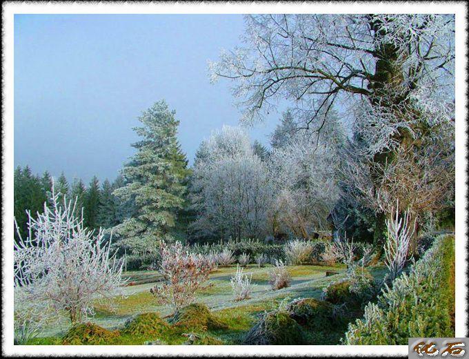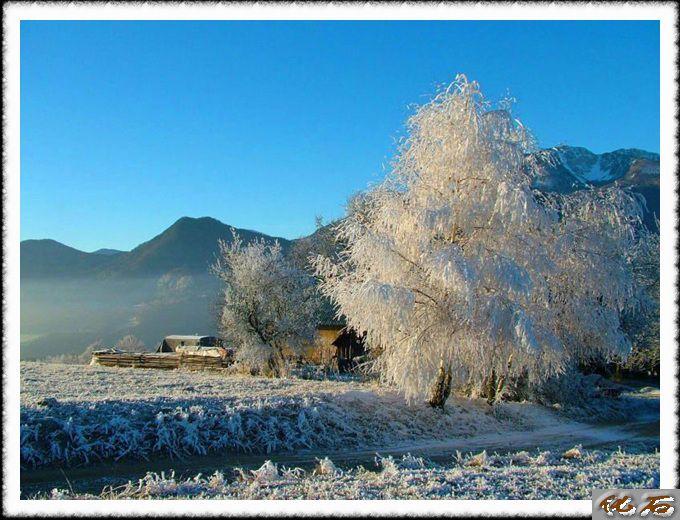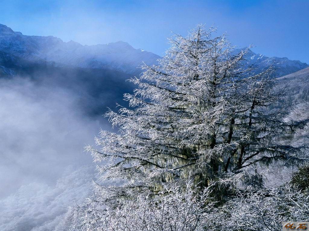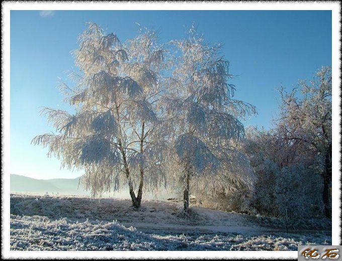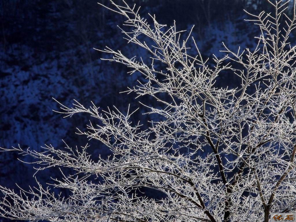 雾淞似霜非霜,似冰非冰,迎风怒放,千姿百态。使松枝、树丛结满了毛绒绒的冰挂,象一株株巨大的白珊瑚,殿阁披上了柔软的轻纱,大地铺展开洁白的毡毯。