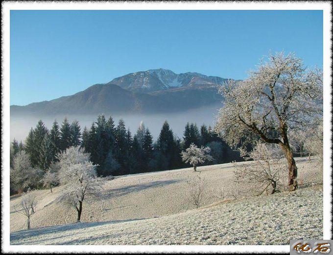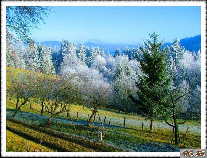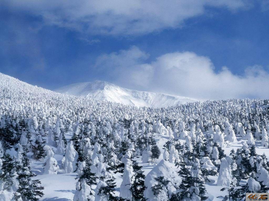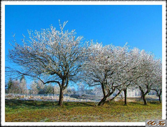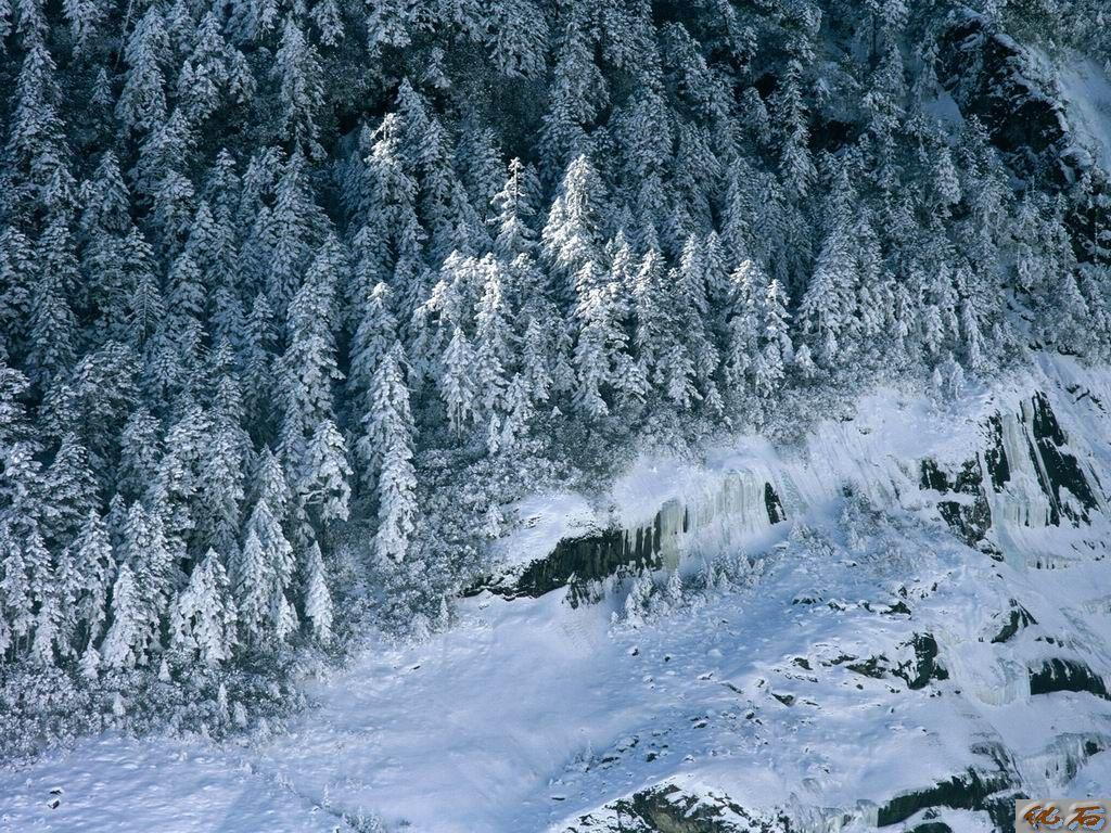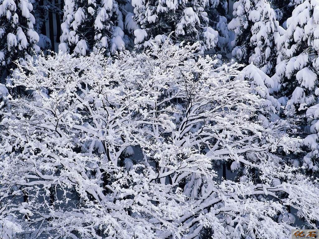 雾淞似霜非霜,似冰非冰,迎风怒放,千姿百态。使松枝、树丛结满了毛绒绒的冰挂,象一株株巨大的白珊瑚,殿阁披上了柔软的轻纱,大地铺展开洁白的毡毯。