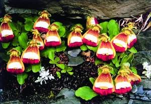 这种娇小的荷包花只有几厘米大小,从山上的岩缝中冒出来。