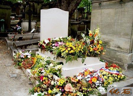 寂静的公墓里,不时地看到有些墓前陈放着鲜花。全世界各地景仰法国文化的Fan都可以在这里找到自己的崇拜者,陈上鲜花。Fan们不须费神,只要奔着有鲜花的地方去,一定是个世界级的名人躺在那里。写《人间喜剧》的小说家巴尔扎克的墓在这里,墓前半身塑像的颈项上挂着鲜花圈。大文豪雨果的灵柩移进了先贤祠,但他家族的墓场还在。还有,谱《卡门》的作曲家比才的墓在,著名油画《自由领导人民》的作者德拉克洛瓦在,社会主义思想的先驱圣西门在,现代派大作家、写《追忆似水年华》的普罗斯特也在。