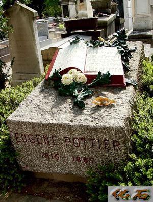 欧仁·鲍狄埃,《国际歌》的作者,我们从小到大都是唱的这首歌,他的墓地是必须要看的。墓地在95区,墓碑很特别,是一本打开的书,书页的左边刻着他的生辰(1816-1887),右边是国际歌的 歌词:“英特纳雄耐尔,就一定要实现!”地图上的介绍说他是一个革命者。