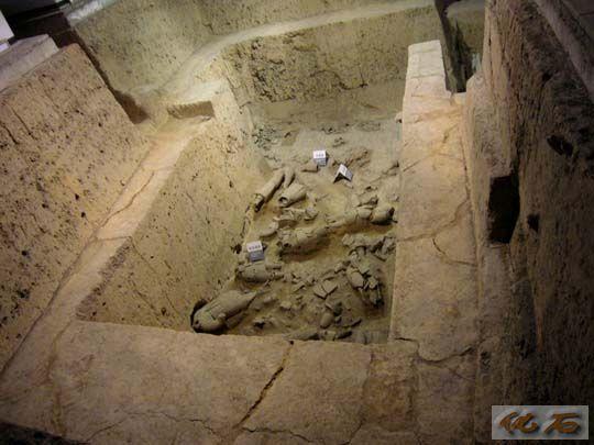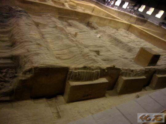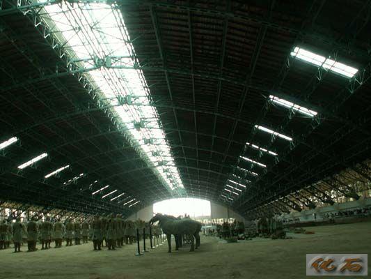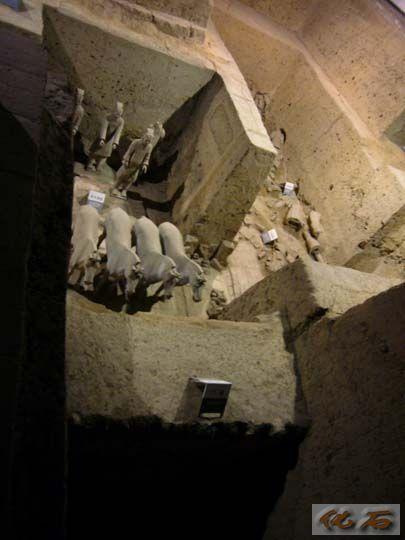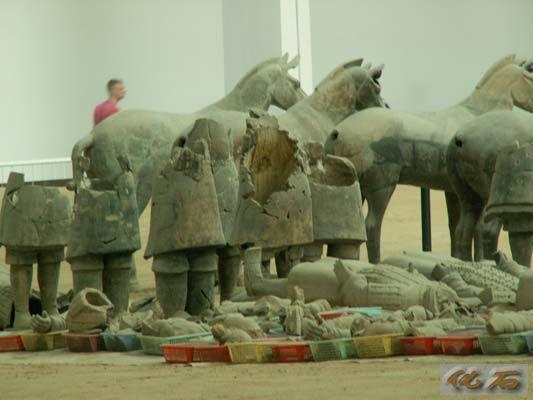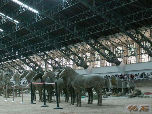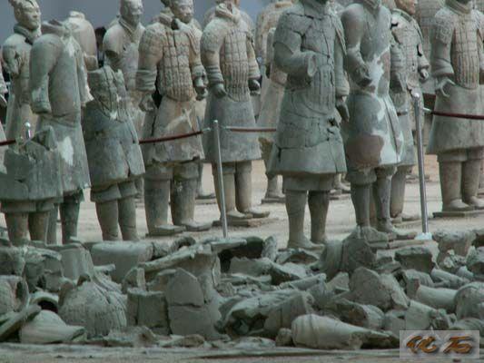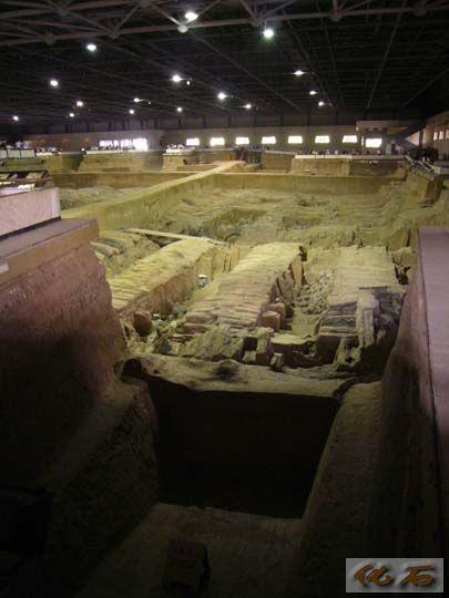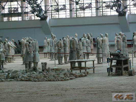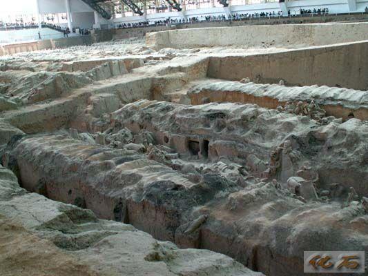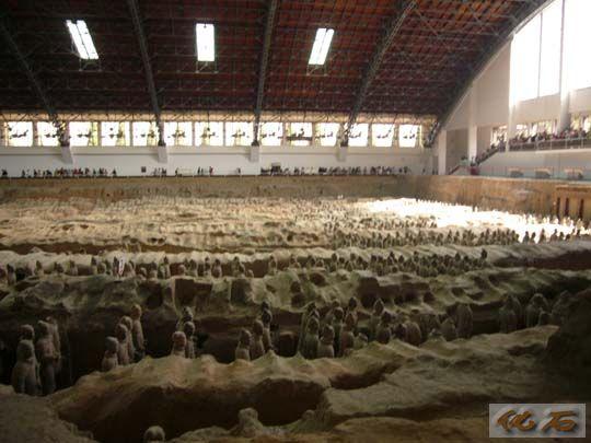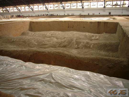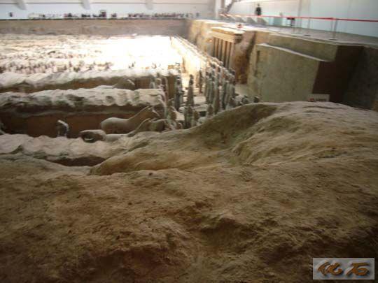一号馆修复好的兵马俑,在太阳的照射下,好可惜 阿姨介绍说,这是神土!这么长的时间都不长草!但我们的技术不过关,还不敢开挖。。。