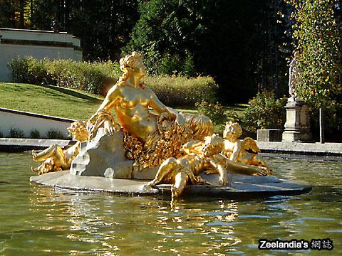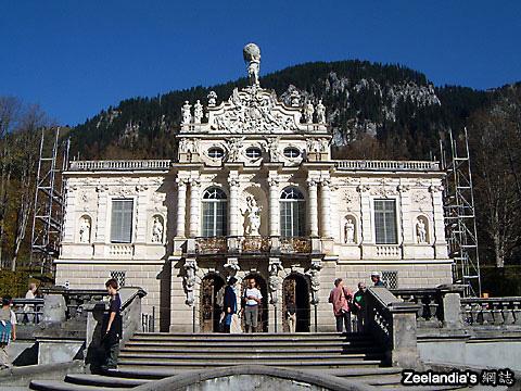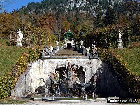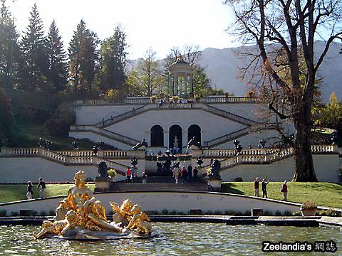1867年新天鹅堡开始建造那一年,21岁的路易二世参观完凡尔赛宫后,赞叹之余,心头就涌上一股建造新凡尔赛的冲动。于是焉,融入法国太阳王路易十四凡尔赛风格的林德霍夫宫就诞生在德奥边界的Ettal附近。