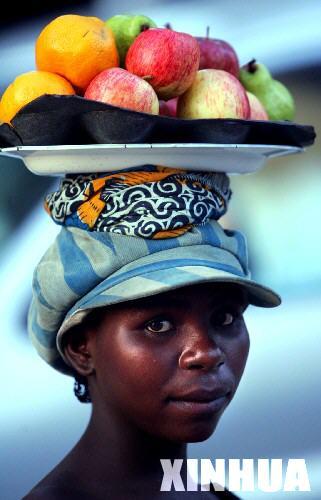 这是2005年4月23日,一名安哥拉小贩在首都罗安达街头出售水果。安哥拉的农业生产在内战结束后逐渐得到复苏。和平环境为国家发展经济提供了有利条件,也为外国公司和企业来安投资和发展贸易带来重要机遇。中国企业与安哥拉签订了一揽子合作协议,向安哥拉提供国家重建所急需的资金、技术和设备,开发当地石油资源,而安哥拉则用资源对中国企业进行偿还。