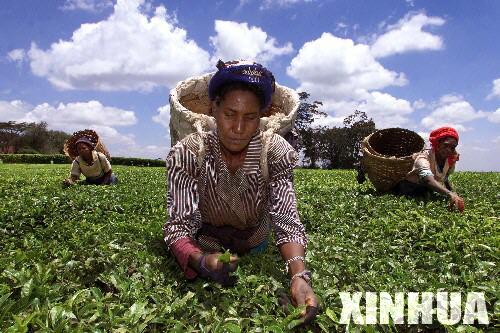 这是2001年10月17日,几名肯尼亚妇女在距首都内罗毕50多公里的利穆鲁采茶。当天,世界茶叶大会在内罗毕召开。采茶业是肯尼亚出口的支柱产业,是许多肯尼亚高原人口的主要生活来源。