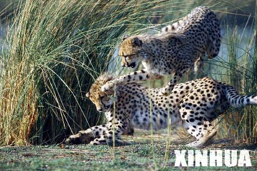 这是14个月的猎豹在博茨瓦纳草丛中玩耍。博茨瓦纳有三个国家公园,五个野生动物保护区,旅游业是博茨瓦纳的第三大行业