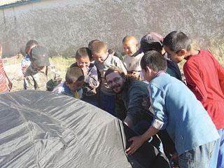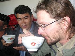 原来,9月10日,当地一家哈萨克族牧民结婚。诺伯特和翻译陈祥军都去了。诺伯特一到那里便大受迎,无论他走到哪里,这个黄头发高鼻子的大个子后面,都跟着一队小孩子。而热情开朗的他也勤快能干,又是帮人照相,又是帮新郎卸车。