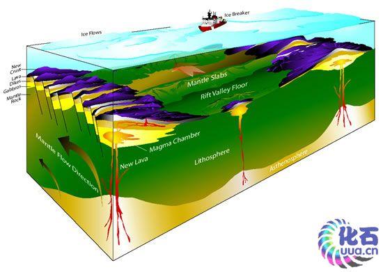 Gakkel山脊对于我们了解全球海洋中的山脊系统来说是重要的,但由于该山脊地处北极高纬度地区的永久海冰下面,人们无法到达,所以它的秘密不为人们所知。直到2001年夏,当有两艘科研破冰船(PFS Polarstern和USCGC Healy)参加的一个联合科考队能够对该山脊详细绘图时,它的秘密才被人们揭开。《自然》杂志报告了这一名为“AMORE 2001”的科考活动的初步地质和地球物理成果。这次科考最令人吃惊的发现也许是,这一扩散速度最慢的山脊原来火山活动颇多。这里的热液活动(表现为“黑烟囱”形式)远比以前所预测的大。