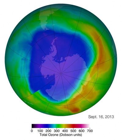 美国航天局近日说,今年南极上空的臭氧层空洞面积稍稍小于往年平均水平,不过现在要说臭氧层已开始恢复为时尚早。