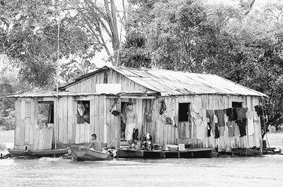 这是分布在亚马孙河流域的众多村落之一,共有450多人,约有100人仍居住在雨林中,从未与外界接触过。当地居民使用特殊的木材做房基将房子建在水面上,据说这种木材可以在水中保持10—15年不腐烂。这些木屋连成一片并可以在水面上移动,因此不用担心雨季到来时会被冲垮。记者在村落里还看到了一家专为当地人开的小酒吧,到了晚上,这里一派自得其乐的景象。