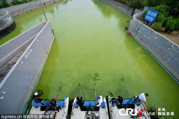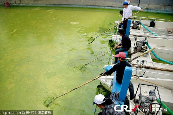 太湖蓝藻爆发一天打捞近千吨。图片来源:佚名/东方IC