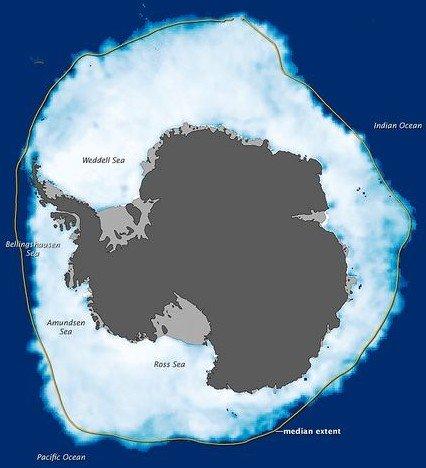9月26日卫星观测的南极海冰面积情况,约为1944万平方公里