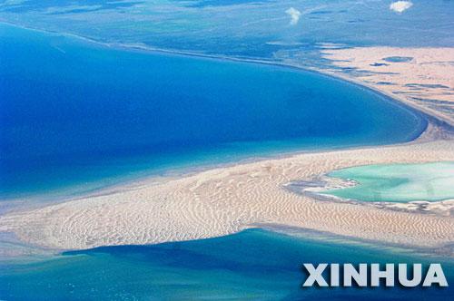 这是正在被沙漠侵蚀的青海湖(9月11日摄)。有关气象监测表明,我国最大内陆咸水湖青海湖以南地区沙丘正在以一年5.9――8.6米的水平速度移动的同时,以一年20米左右的速度在“长高”,这说明这一地区的沙漠化程度在加剧。 新华社记者嘎玛摄