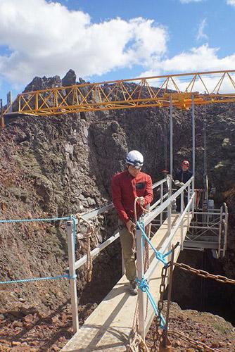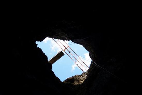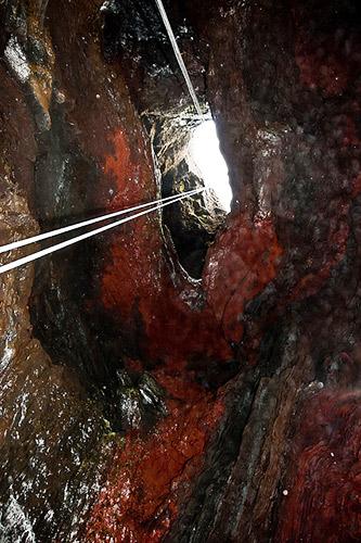 与当初斯坦凡森拿着绳索潜入黑洞洞的火山内部不同,现在的探险家都通过特殊的升降机进入火山内部。通过旁边的照片,你可以看到墙壁上火山熔岩绚丽的纹理和色彩。