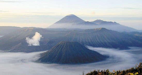 不久前,我在印尼登上腾格尔火山高处,观看有“月球地貌、世界尽头”之称的婆罗摩火山、赛梅鲁火山等组成的火山群。