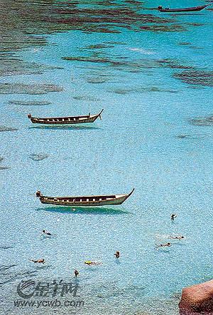 坐在有空调的大型游艇上,约6小时的航程便抵达离普吉岛100多公里的国家海洋公园———KohSimilan斯米兰群岛。这里可以用海上的香格里拉来形容,奶粉般柔软细腻的沙滩,碧蓝的海水清澈见底,壮观的珊瑚礁群比比皆是,鱼群种类繁多更是东南亚之冠。游艇甫一停靠,船上各人拿起五花八门的钓鱼用具,一下子,吞拿鱼、星点石班、大海鲢鱼、RainbowFish和一些连名字也念不出的鱼儿相继上岸亮相。午餐时间船长用心烹调着刚钓上的海鲜大餐,乖巧的儿子炮制着鱼刺身和美味的菠萝炒饭,虽然味道远不及餐馆的水准,但对着这海天一色的美景,谁又会计较这点小事。在这里,没有丝毫游客的感觉,就如懒洋洋的岛民和远处的渔民一样心情,充满简朴的生活气息。