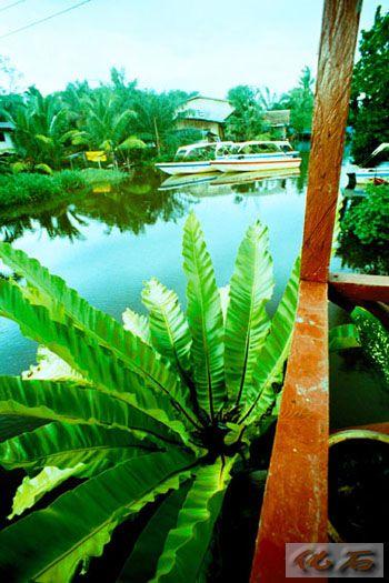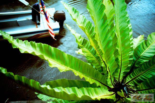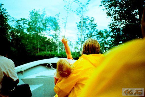 开船的小伙另辟蹊径,拐进一条狭小的岔道,关掉马达,四周一片寂静.......树枝晃动,一只小长鼻猴快速地从这棵树跳跃到那棵树,一只,两只,再一只.......身影轻盈,舒展。