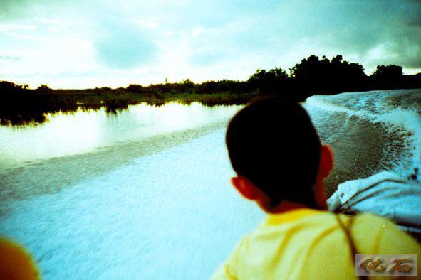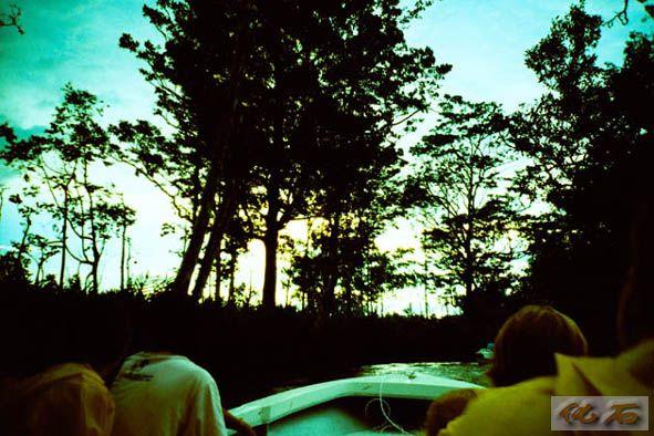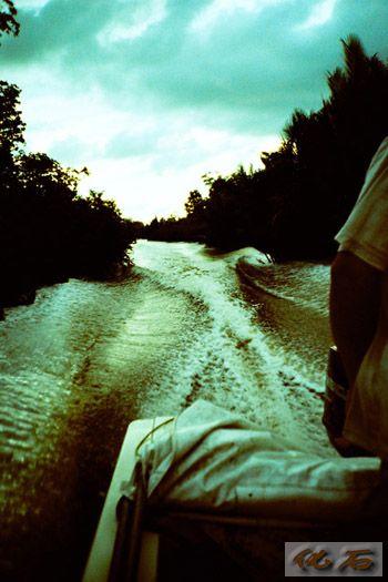 我们沿河道穿梭,两旁林木稠密参差,天空在树梢旋转,仿佛置身360度环形影院。