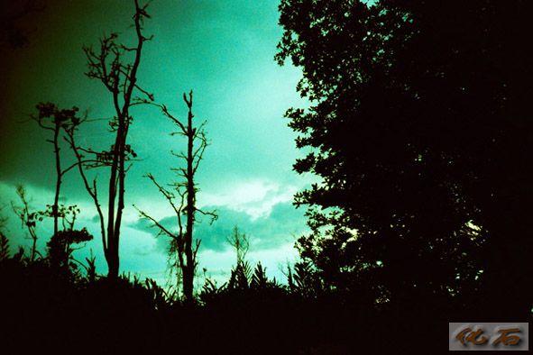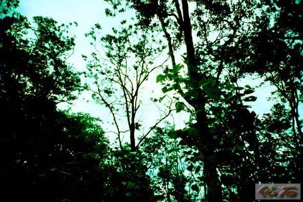上路不久,雨,势如破竹,不由分说地猛下,车好像一头扎入水帘洞,浓绿茂密的树林消隐了,唯见水柱天地流。